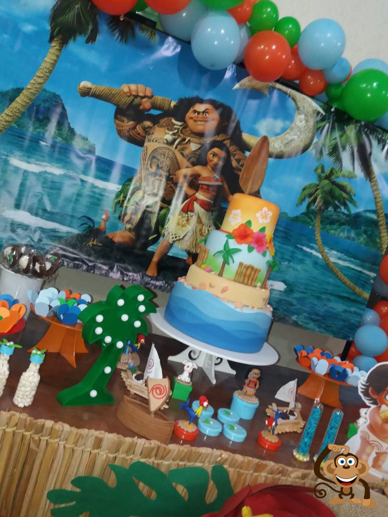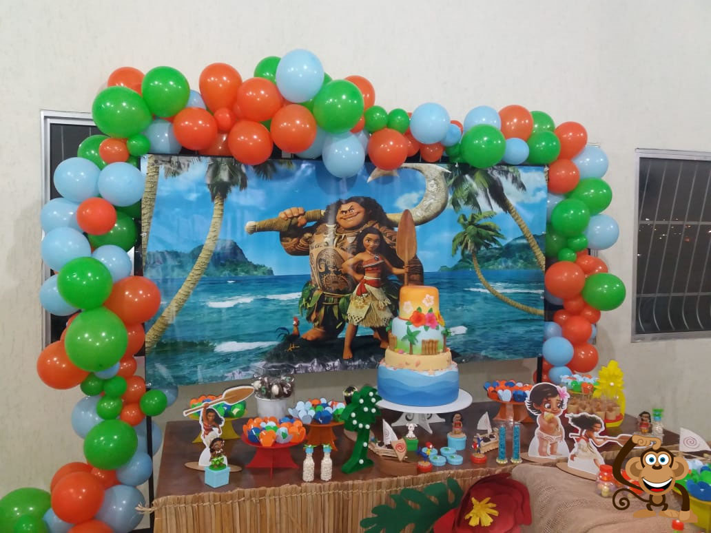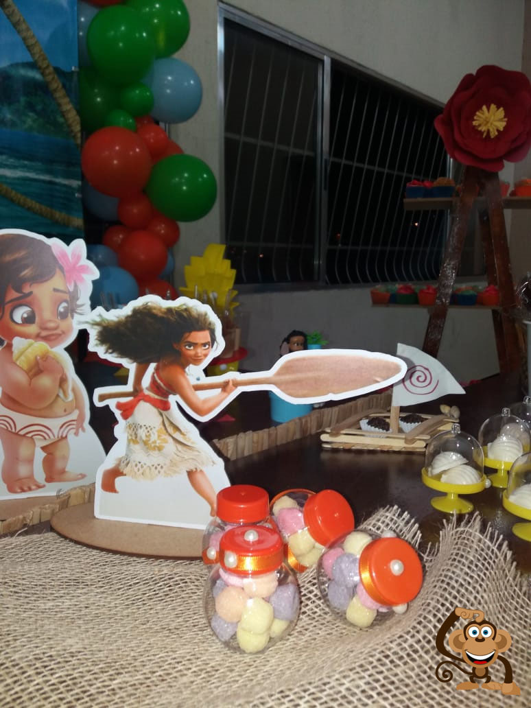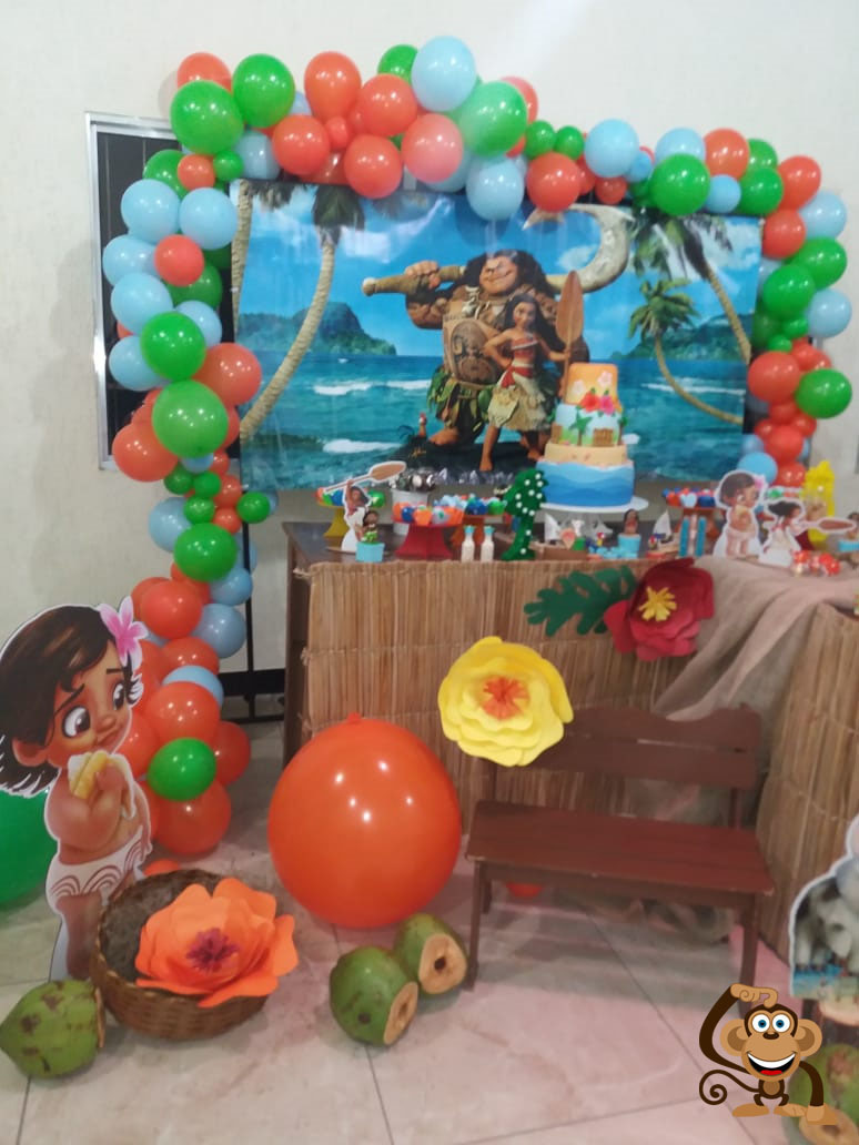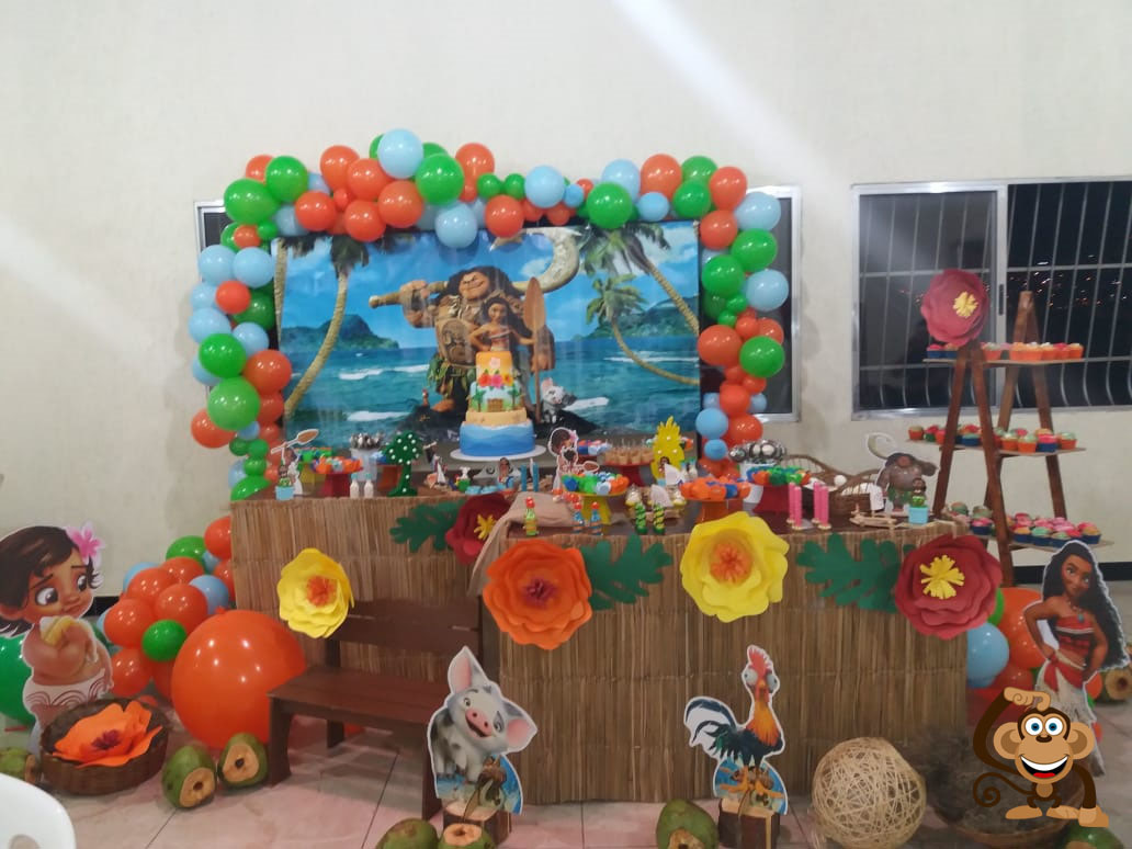 Teve personagem vivo, e pequena se vestiu com as roupas da Moana.