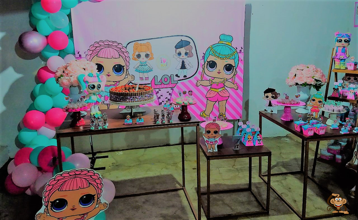 Usamos um trio de mesas em cubo, na cor cobre, super tendência 2019 e balões na cor verde água, rosa bebê, rosa pink e alumínio fúcsia.