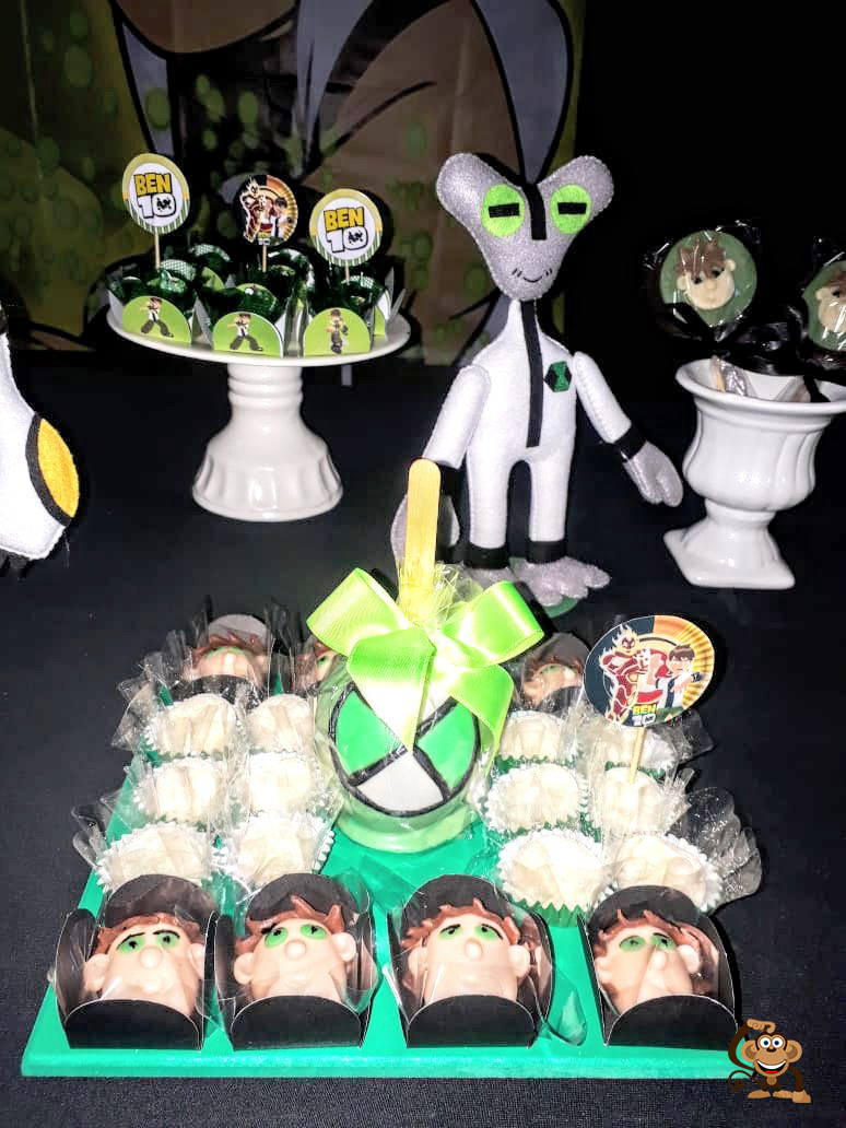 4 anos de muita alegrias, para comemorar o pequeno escolheu a decoração do Ben 10 tudo preto e verde com os aliens.